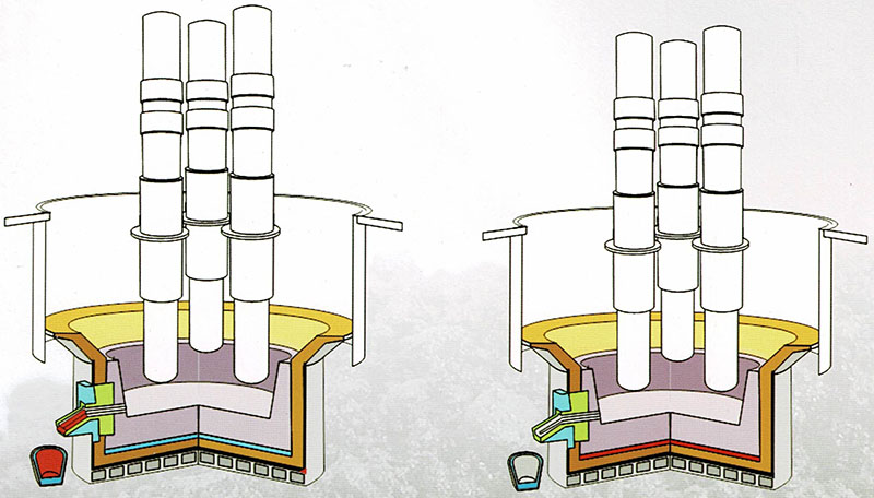 ◎電極坩堝區(qū)產(chǎn)生的氣體不容易滲透到碳化硅層下面的耐火材料層并攻擊下面的耐火材料